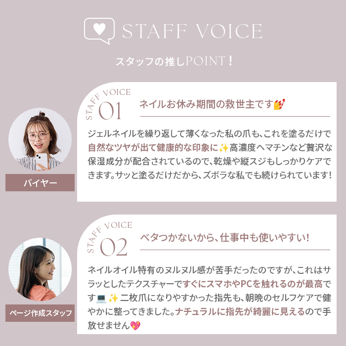 | 使用方法 | 地爪部分や爪裏に液剤を垂らし、指でよくなじませてください。指先に使用すると、ささくれ対策にもなります。1日2回、朝晩使用することをおすすめします。 |