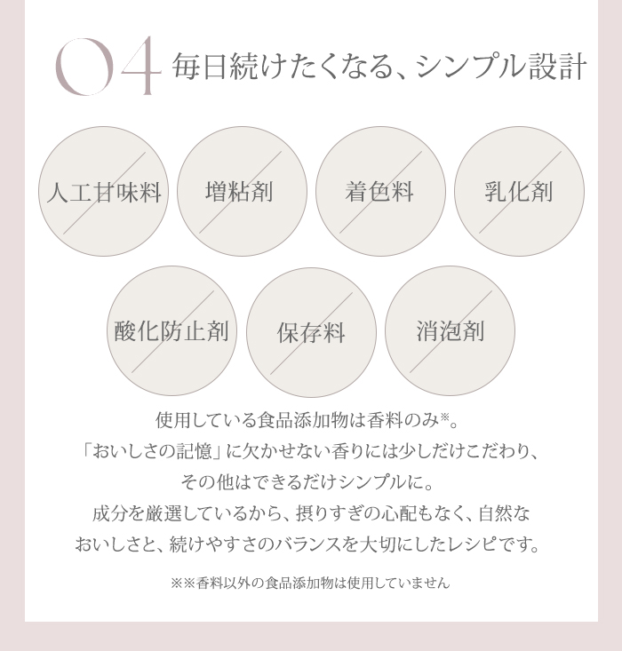 | 栄養成分表示(1食20gあたり) | エネルギー ・・・ 77.5kcal タンパク質 ・・・ 10.2g 脂質 ・・・ 0.9g 炭水化物 ・・・ 8.5g 食塩相当量 ・・・ 0.1g |