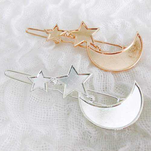 三日月・星の土台のついたヘアピンです。