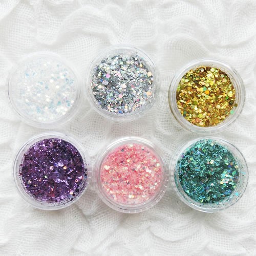 ジェルネイル/レジン封入に 6色 六角形 ホログラム/ラメMIX