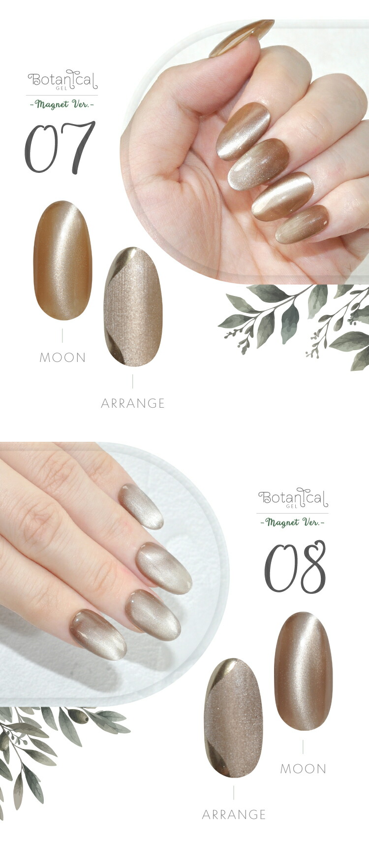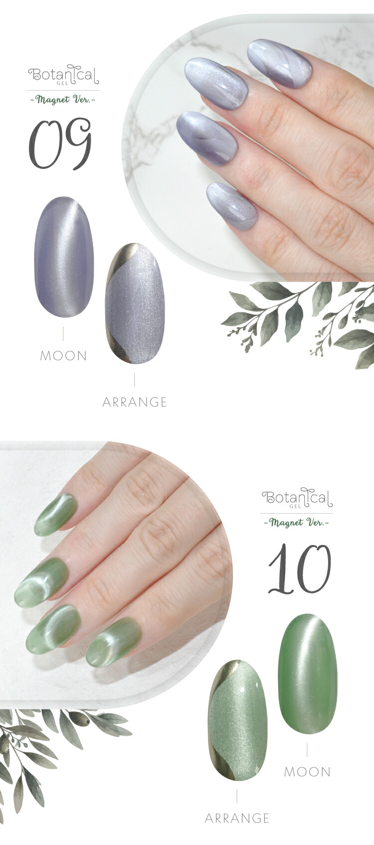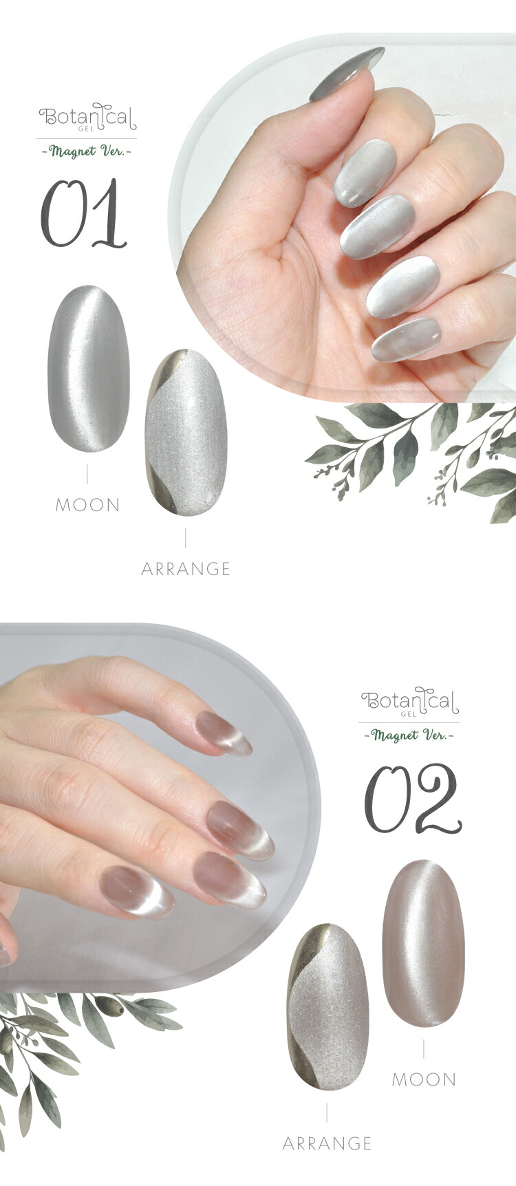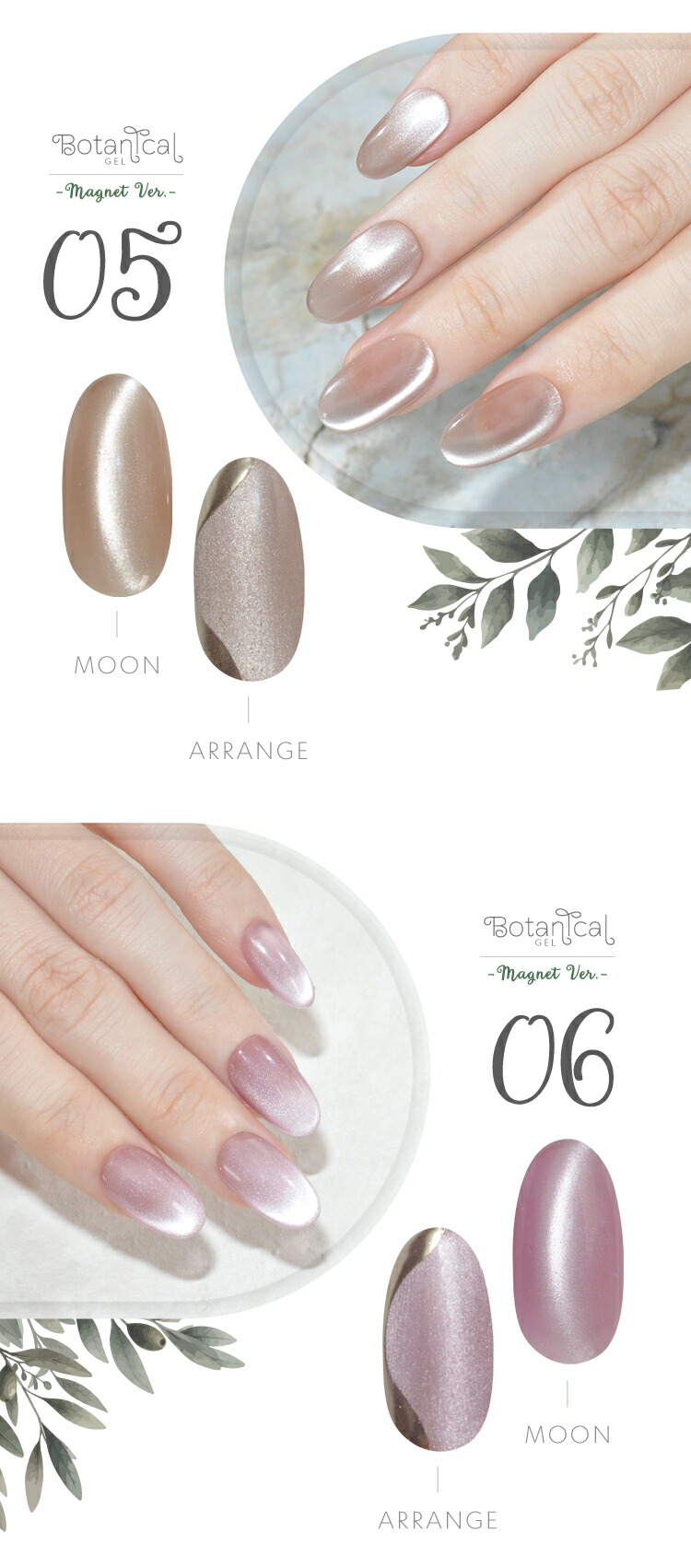 | 環境と人に優しい新感覚の植物由来ジェル 『Botanical Gel』 -Magnet Ver.− 主成分の80%が大豆から抽出された植物由来の樹脂を使用しています 従来の石油由来樹脂とは違い、環境負荷を大幅に軽減しつつ、爪への優しさを追求しました。 環境を大切にした成分で安心しておしゃれを楽しみたい方へ 指先から始めるサステナブル 爪と地球にやさしい選択をしてみませんか? 上質のパールに包まれた様な印象のマグネットネイルです 爪へのやさしさにこだわりながら、マグネットパウダーの輝きが繊細に揺れて、まるで自然の中できらめく光を閉じ込めたようなMagnetNailが実現します 毎日に寄り添う 心地よく上品な輝きを・・・ 自然体のまま心ときめく輝く美しさへ。 ■商品仕様 全成分:大豆油2-【(2-ヒドロキシエチル)アミノ】エチルエステルエチルエステルプロポキシレートネオペンチルレングリコールジアクリレート、トリメチルベンゾイルフェニルホスフィンオキサイド、二酸化ケイ素、赤色201号、赤色104号、酸化鉄、カーボンブラック、酸化チタン、酸化クロム、ウルトラマリン 内容量:5g ■お知らせ No02およびNo04において、ラベルの色名表記が同一となっております。 それぞれ商品ページに掲載されている通り、実際の色味は異なります。 ■使用上の注意 ベースジェルの上からご使用ください。爪以外に使用しないで下さい。 硬化時間:LED48W・・・40秒/UV36W・・・120秒 ※塗布量により硬化時間を長く設定して下さい。 植物由来であっても、硬化にはUV/LEDライトが必要です。使用手順を確認してください。 植物由来のジェルが全て天然素材という訳ではない為、成分表を確認してください。 保管について 品質保持の為、45度以上になる場所での保管はご遠慮下さい。 商品写真はできる限り実物の色に近づけるよう徹底しておりますが、 お使いのモニター設定、お部屋の照明等により実際の商品と色味が異なる場合がございます。 白いボトルを採用しています。塗装不良の黒い点などがありますが、ジェルに問題はありませんので、良品として出荷します。 | |