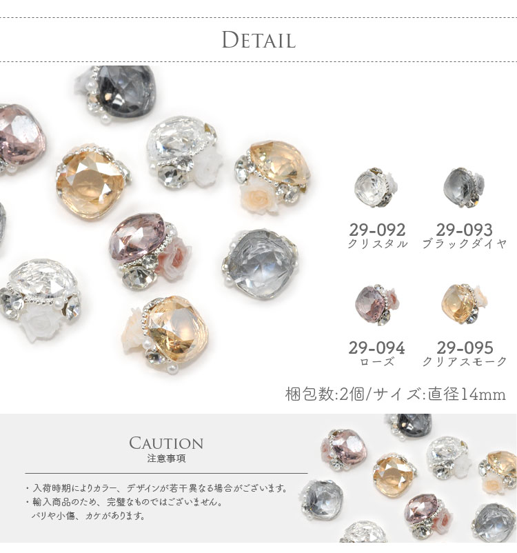 | ・入荷時期によりカラー、デザインが若干異なる場合がございます。 ・輸入商品のため、完璧なものではございません。バリや小傷、ストーンのズレがあります。 ・同色2個セットとして梱包しておりますが、製造ロットや入荷時期の違いにより完全に同一の色味にならない場合がございます。使用上の問題はございませんので、良品として出荷しております。色味の違いによる返品・交換はお受けできません。 | |