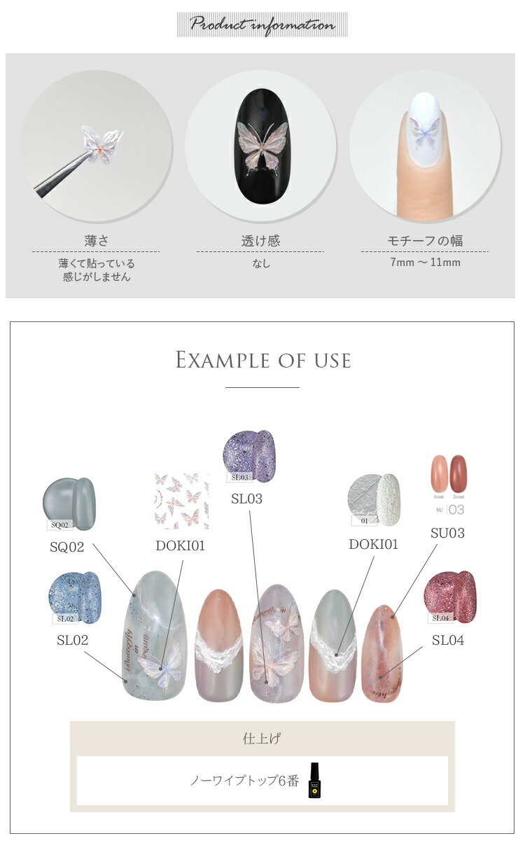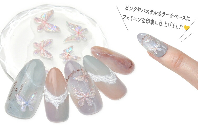 | Prismatic Flutter お花畑の使者 羽部分にホログラムがさり気なく入っていてかすかに煌めく美しい蝶々のネイルシールです ピンクやパステルカラーをベースにフェミニンな印象に仕上げました -------------------------------------- 薄さ:薄くて貼っている感じがしません 透け感:なし モチーフの幅:7mm〜11mm | |