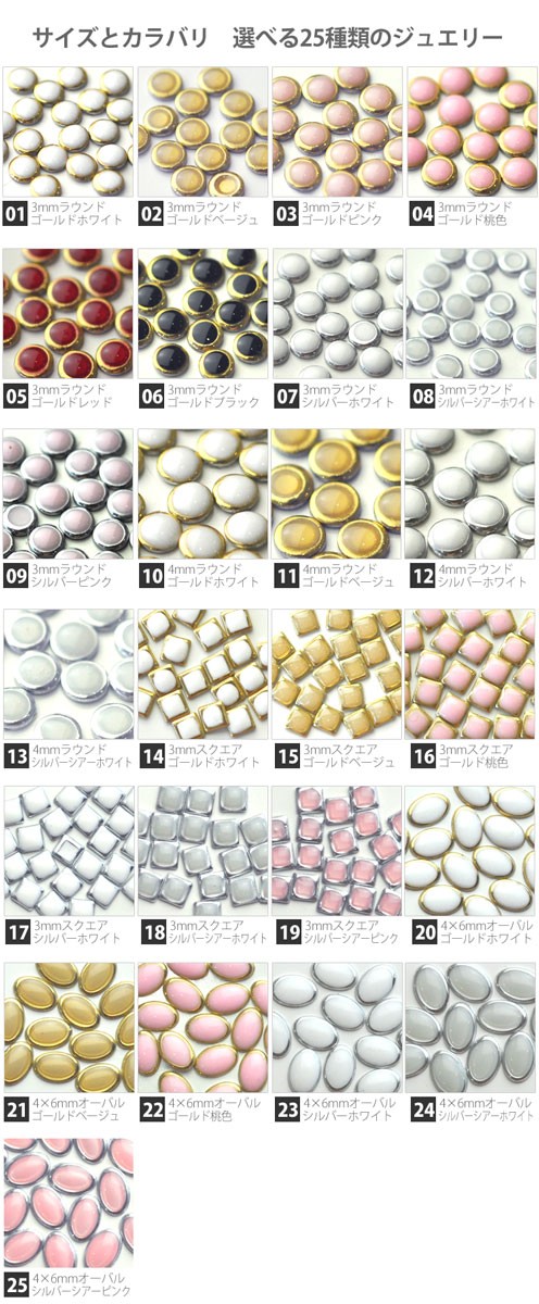 | 形 | ラインストーン カット面のないぷっくり 底面はフラットになっています。 |
