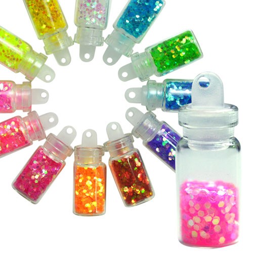 【ゆうパケットOK】ホログラム六角形1mmクリア12色セット(お試し少量パック)
