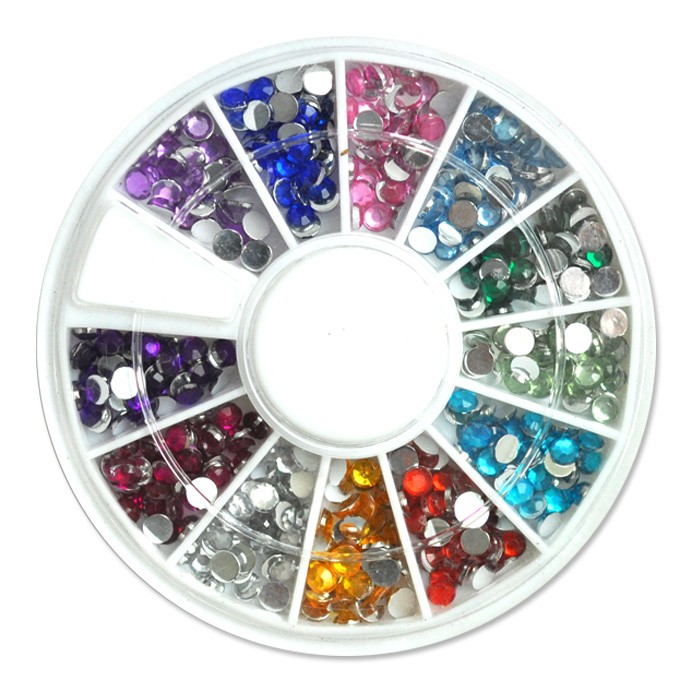 【メール便OK】ジェルネイルの埋め込みに♪アクリルストーンラウンドダイヤカット3mm12色(お試し少量パック)
