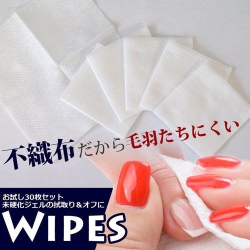 【メール便OK】毛羽立ちにくく柔らかい!不織布ワイプ30枚セット ジェルネイルの未硬化ジェルの拭き取りやオフのリムー