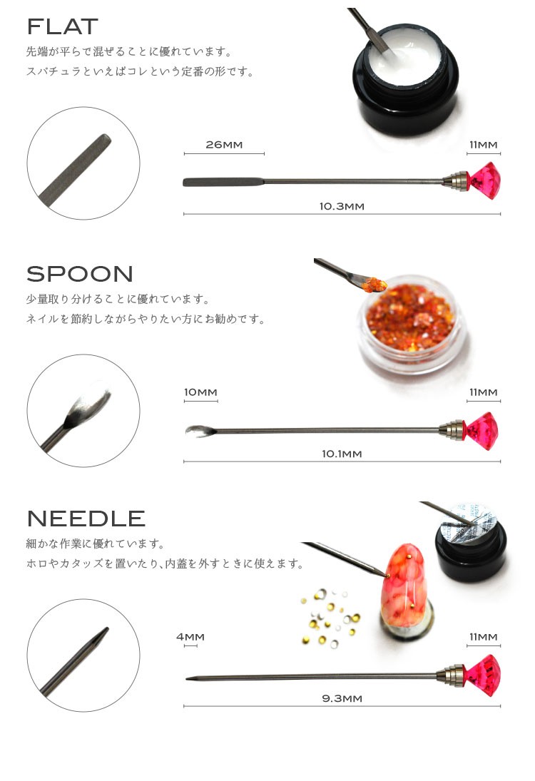 スパチュラ ダイヤモンド型 選べる9シェイプ ジェル 混ぜる スティック スプーン ニードル ジェルネイル用スパチュ