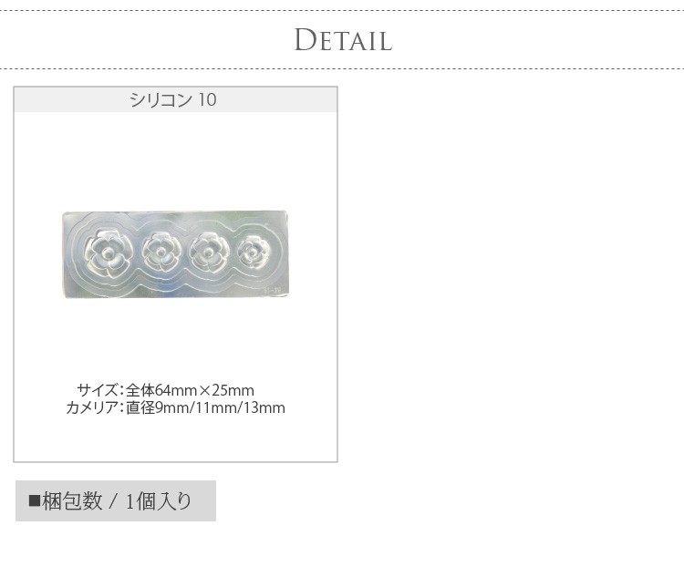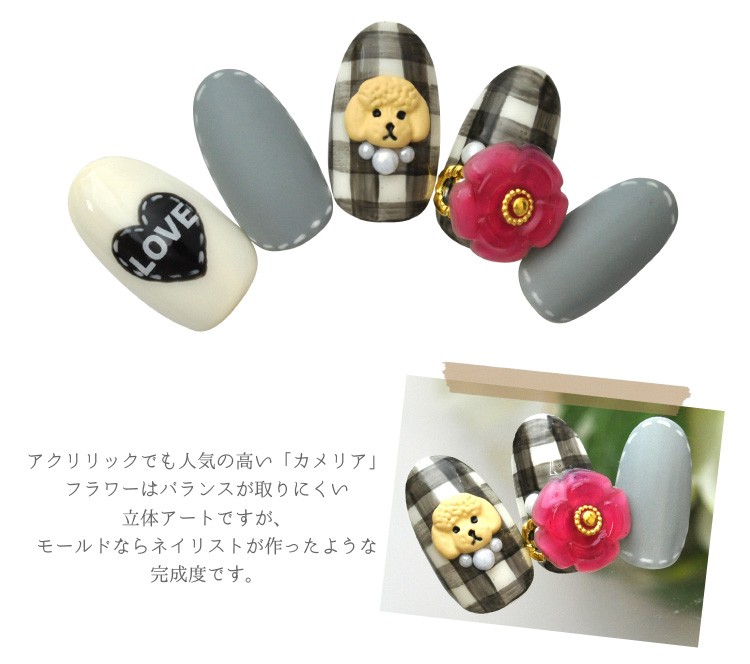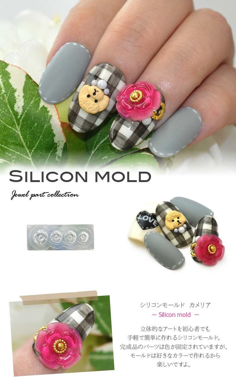 | シリコンモールド カメリア(Silicon mold) 立体的なアートを初心者でも手軽で簡単に作れるシリコンモールド。 完成品のパーツは色が固定されていますが、モールドは好きなカラーで作れるから楽しいですよ。 アクリリックでも人気の高い「カメリア」 細かな細工は難しいですが、モールドならネイリストが作ったような完成度です。 | |
