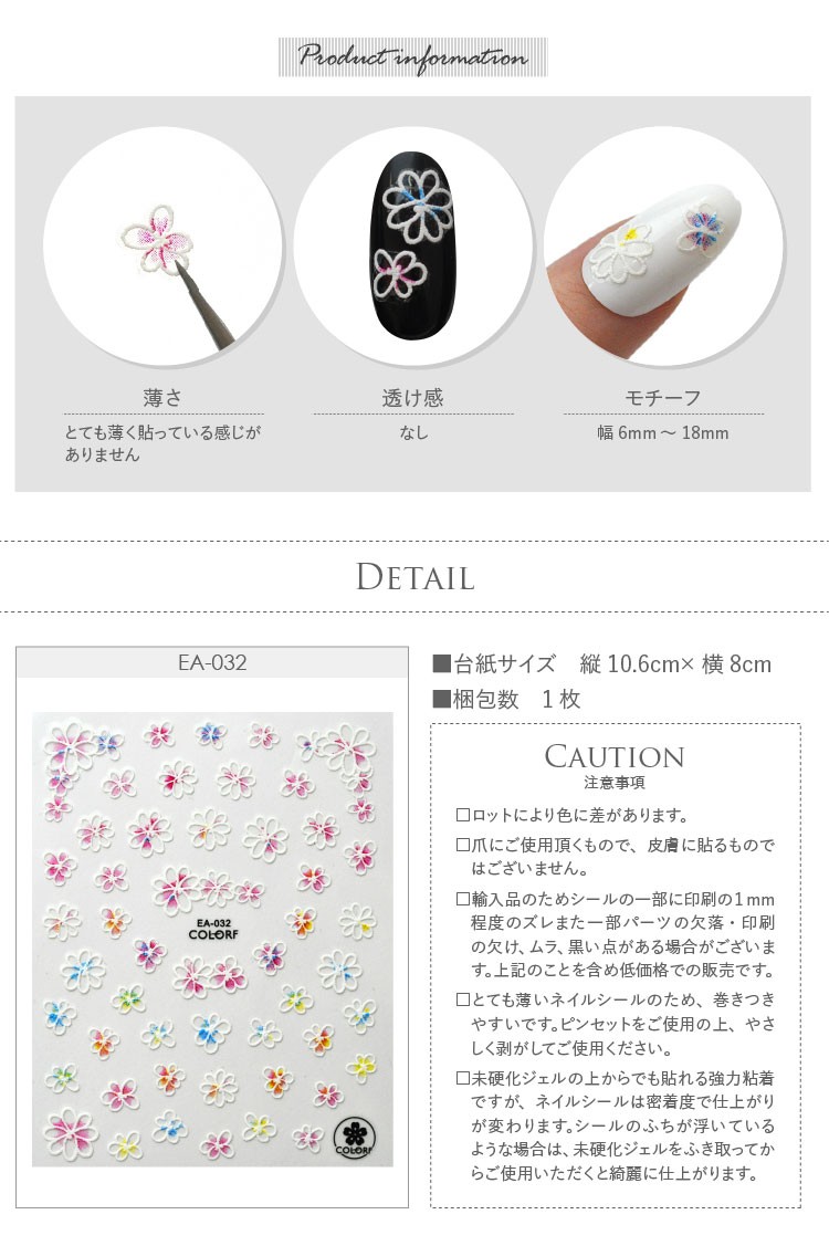 | ・ロットにより色に差があります。 ・シールの一部に印刷のズレ、ムラ、剥がれがある場合がございます。 ・とても薄いネイルシールのため、巻きつきやすいです。ピンセットをご使用の上、やさしく剥がしてご使用ください。 ・未硬化ジェルの上からでも貼れる強力粘着ですが、ネイルシールは密着度で仕上がりが変わります。 シールのふちが浮いているような場合は、未硬化ジェルをふき取ってからご使用いただくと綺麗に仕上がります。 | |