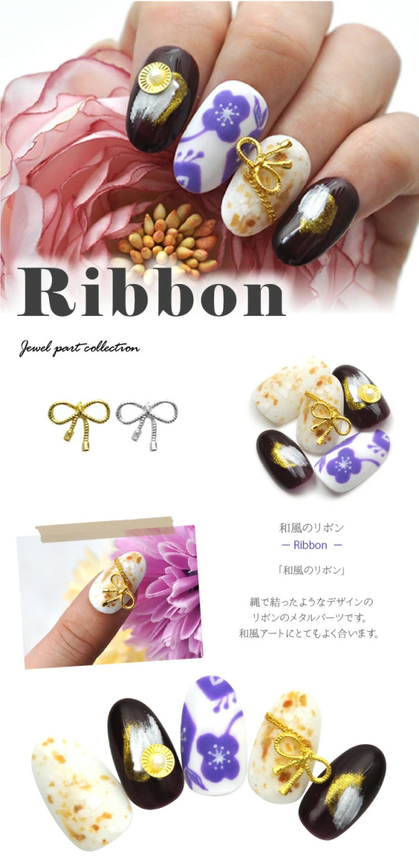 リボン メタルパーツ ネイルパーツ ネイルジュエリー 水引 和風 ゴールド シルバー 七五三 | ジェルネイル ネイ