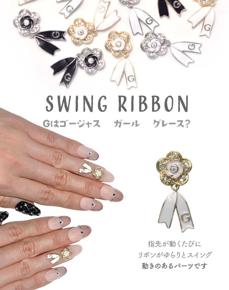 | SWING RIBBON Gはゴージャス ガール グレース? 指先が動くたびにリボンがゆらりとスイング 動きのあるパーツです キュートなベースにのせるとパーツがキュッと引き立ちみんなの視線を独り占め | |