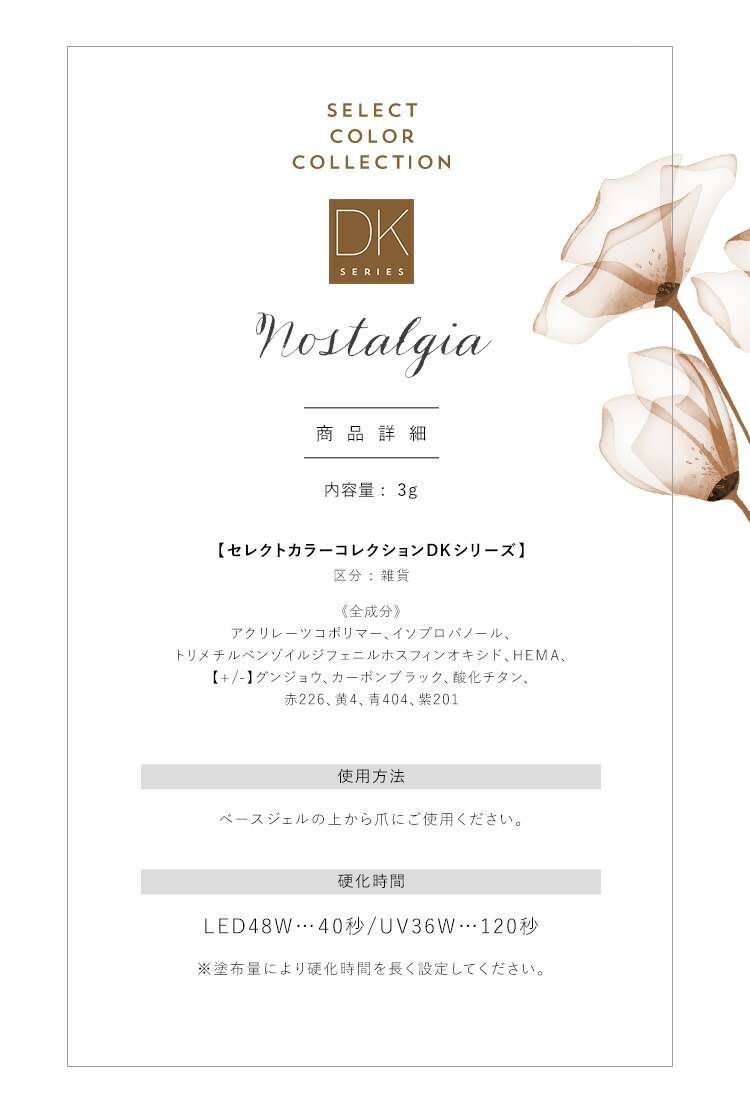 カラージェル くすみ シアー感 シアーカラー 『ノスタルジア』DKシリーズ ジェルネイル セレクトカラージェル カラ