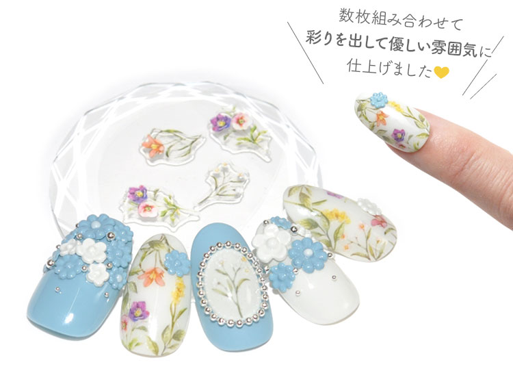 | pressed flowers 小さな押し花模様 とても小さな押し花の様に見えるお花のネイルシールです 数枚組み合わせて彩りを出して優しい雰囲気に仕上げました -------------------------------------- 薄さ:薄くて貼っている感じがしません 透け感:なし モチーフの幅:5mm〜13mm | |