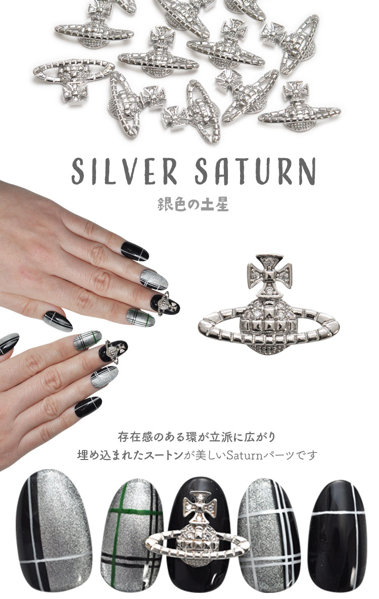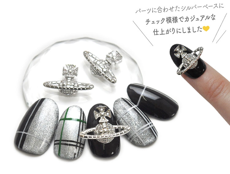 SILVER Saturn 銀色の土星 存在感のある環が立派に広がり埋め込まれたスートンが美しいSaturnパーツです パーツに合わせたシルバーベースにチェック模様でカジュアルな仕上がりにしました |