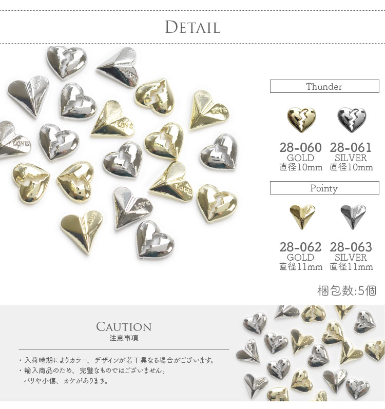 | Mini MeltingHEART Crash HEART Love&Thunder タイトな印象とポップなイメージの2種類のハートです ちょっぴりクール!時にカジュアルに! スタイリッシュなパーツで大人カジュアルな印象に仕上がります | |