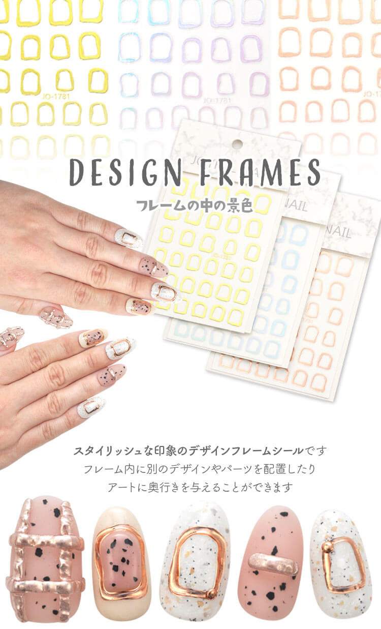 | design frames 窓の中の景色 クールでスタイリッシュな印象のデザインフレームシールです フレーム内に別のデザインやパーツを配置したりアートに奥行きを与えることができます シールの上にアイシングを施すと立体的により印象的になります -------------------------------------- 薄さ:薄くて貼っている感じがしません 透け感:なし モチーフの幅:8mm〜13mm | |