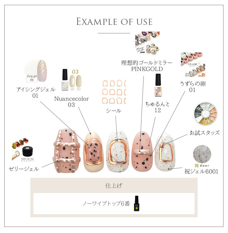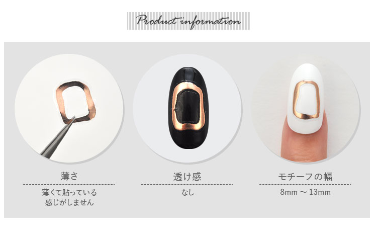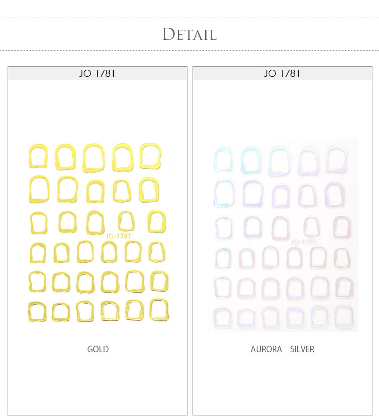 | ・ロットにより色に差があります。 ・シールの一部に印刷のズレ、ムラ、剥がれ、黒い点がある場合がございます。 ・台紙から剥がす際に剥がれやすいネイルシールのため、一部のシールが使えません。 ・とても薄いネイルシールのため、巻きつきやすいです。ピンセットをご使用の上、やさしく剥がしてご使用ください。 ・未硬化ジェルの上からでも貼れる強力粘着ですが、ネイルシールは密着度で仕上がりが変わります。 シールのふちが浮いているような場合は、未硬化ジェルをふき取ってからご使用いただくと綺麗に仕上がります。 | |