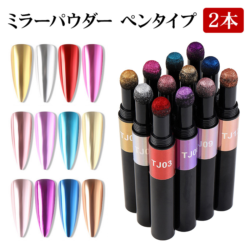 【ミラーパウダー ペンタイプ 2本セット】ミラーネイル ミラーパウダーペン メタリック メタル メタリックパウダー ミラー クロム グリッター ラメ カラーパウダー スポンジ ペン型 スティック ポッキリ ぽっきり ポイント消化 メール便送料無料【あすつく】【パーツ】
