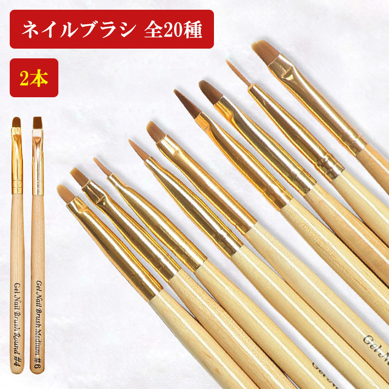 ●商品名ネイル 筆【ジェルブラシ(木製) 2本セット】ジェル ジェルネイル ブラシ ジェル筆 ラウンド スクエア 平筆 アンギュラー スランテッド フレンチ 斜め ライン アート 細筆 長 短 蓋 フタ付き 初心者 セルフネイル ポッキリ ぽっきり ポイント消化 メール便送料無料【あすつく】