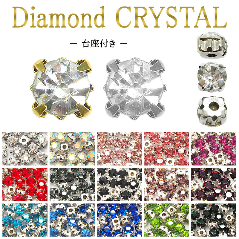 ラインストーン ガラス【台座付き】クリスタルストーン 3〜10mm 大 小 大粒 小粒 大きめ 小さめ 高品質 ビジュー クリア クリスタル シルバー ゴールド 爪付き ツメ 座金 土台 お試し 初心者 デコ ネイル ジェル レジン 手芸【あすつく】【パーツ】