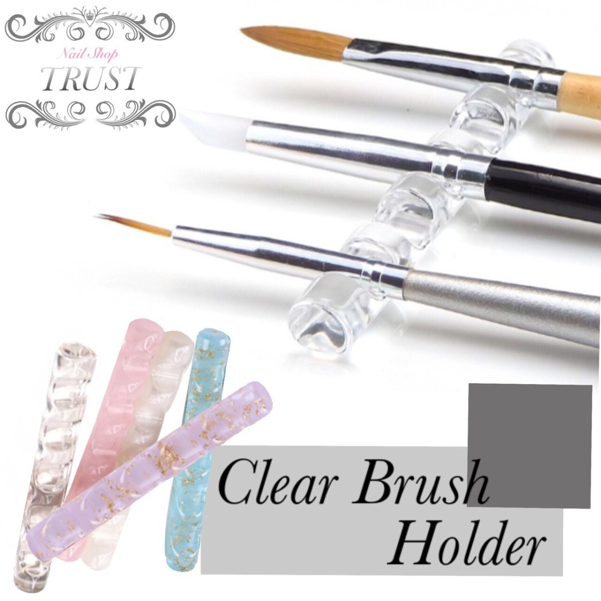 コンパクトで透明感があるブラシホルダーです。手の平サイズで持ち運びがしやすく、広い施術スペースを確保することができます。