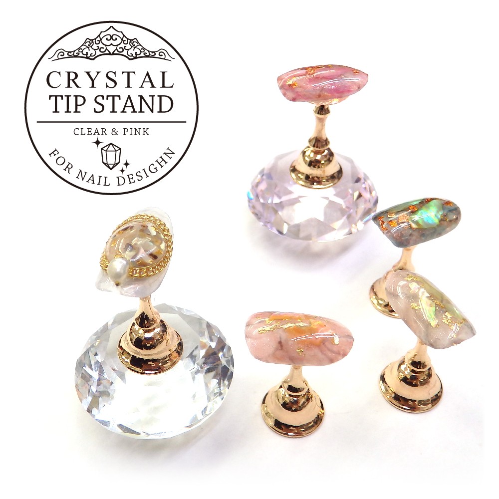 クリスタル台(クリスタルorピンク)1点、チップスタンド5本、接着ゴム付き