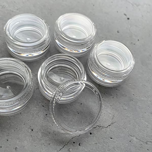 パウダーなどを入れても漏れにくく開け閉めしやすいクリアケースです。5個入り直径3cm 高さ1.5cm