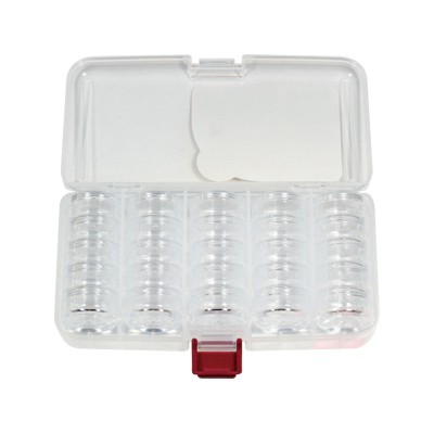 ラウンドケース(5段組み)×5個が、1ケースにぴったりと納まったセットです。持ち運びの際や、普段使わない際の収納に重宝しそうです。また、ストーン類の種類が増えてきて、入れた場所が分からない!という事態を防ぐため、とっても便利な『インデックスシール』が付いています。ラウンドケースの側面にシールを貼り、シール面を表に向けて収納しておけば、使いたいストーンがどこにあるかがケース越しにも一目瞭然。忙しいサロンワークに役立つ一品です。