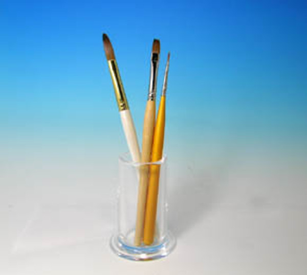 クリアのブラシスタンド。ちょっと置いておくのにスペースをとらないのでデスクの上がきれいに整理できます。お手ごろ価格も魅力。