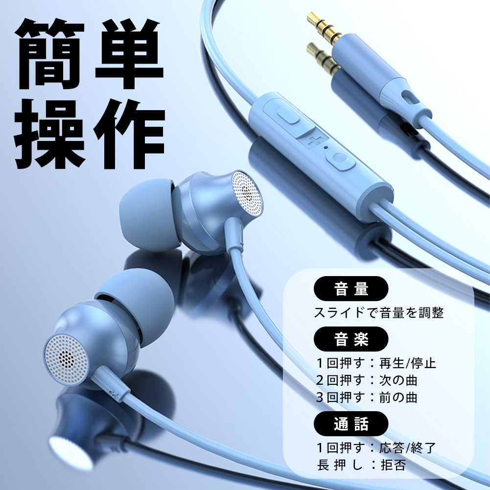 マイク付き有線イヤホンでテレワークやオンラインゲームに最適。