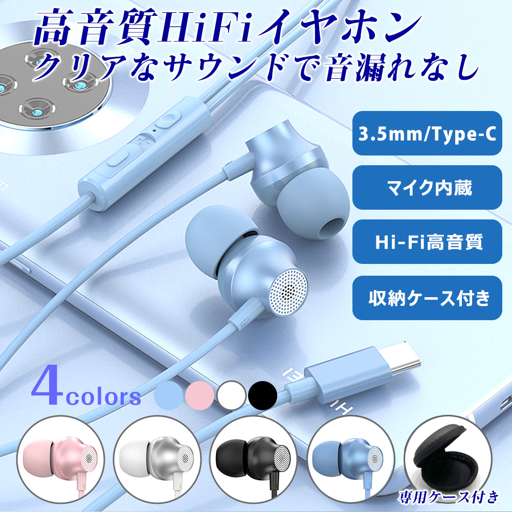 Type-C イヤホン TypeC タイプc 3.5mm イヤフォン カナル型 くすみカラー HIFI音質 収納ケース ゲーミング 有線 ノイズキャンセリング マイク付き ハイレゾ