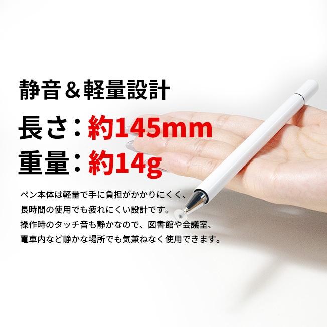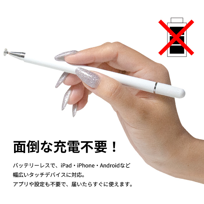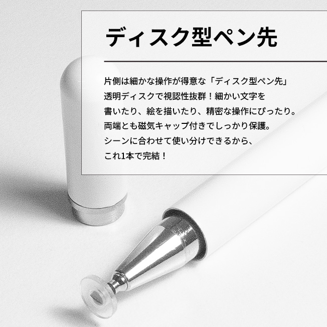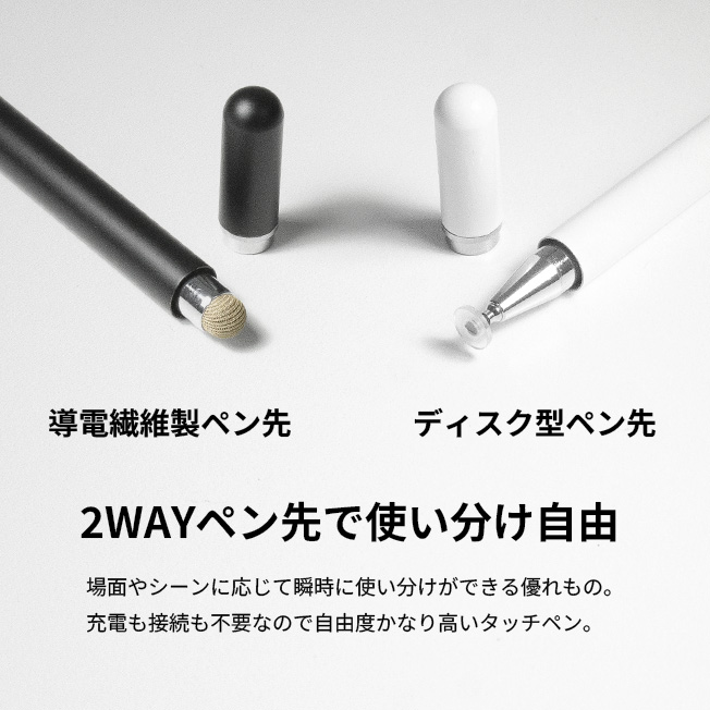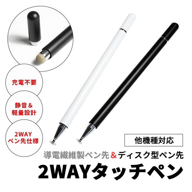 充電不要 2WAY タッチペン スタイラスペン 導電繊維製 ディスク型ペン先 超高感度 静音設計 多機種対応 iphone iPad Android アンドロイド タブレット