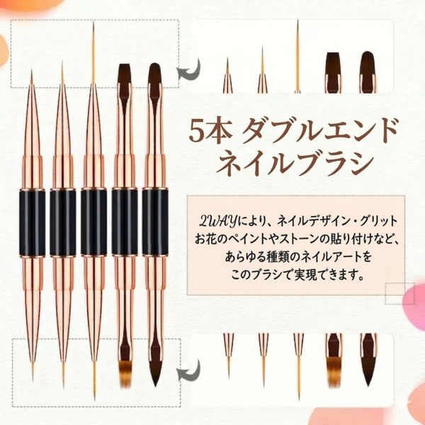 便利なダブルエンドタイプのネイルブラシ5本セット