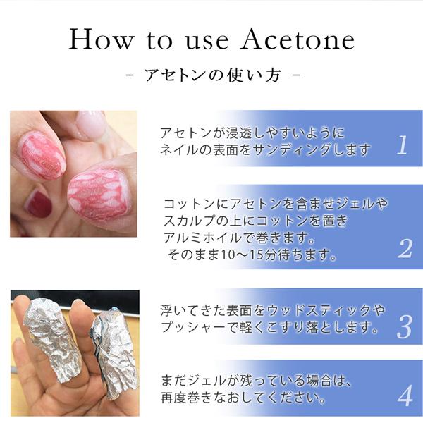 99%以上の純アセトンで、ジェルネイルのオフやカラーのオフに便利!