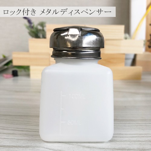エタノールやポリッシュリムーバーなどを入れる便利なポンプディスペンサーです。