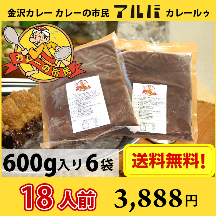 【送料無料】18人前 金沢カレー カレーの市民アルバ カレールゥ 1袋600g6袋 (北海道 沖縄 離島は別途送料1200円かかります)
