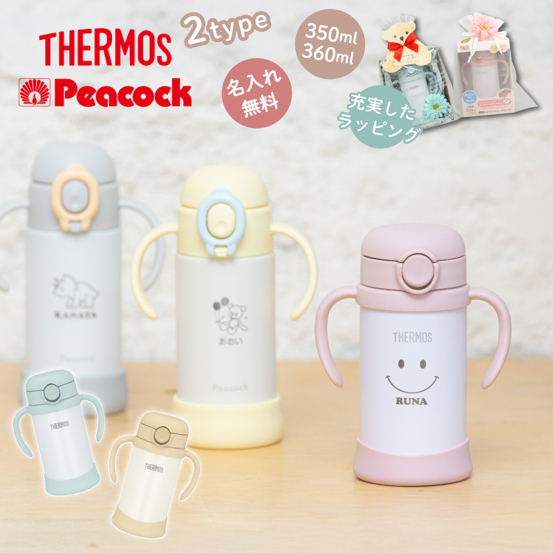 |名入れ無料| ストローマグ サーモス ピーコック 名入れ 保冷 出産祝い 名前入り プレゼント THERMOS FJT-350 350ml Peacock APB-R35 360ml