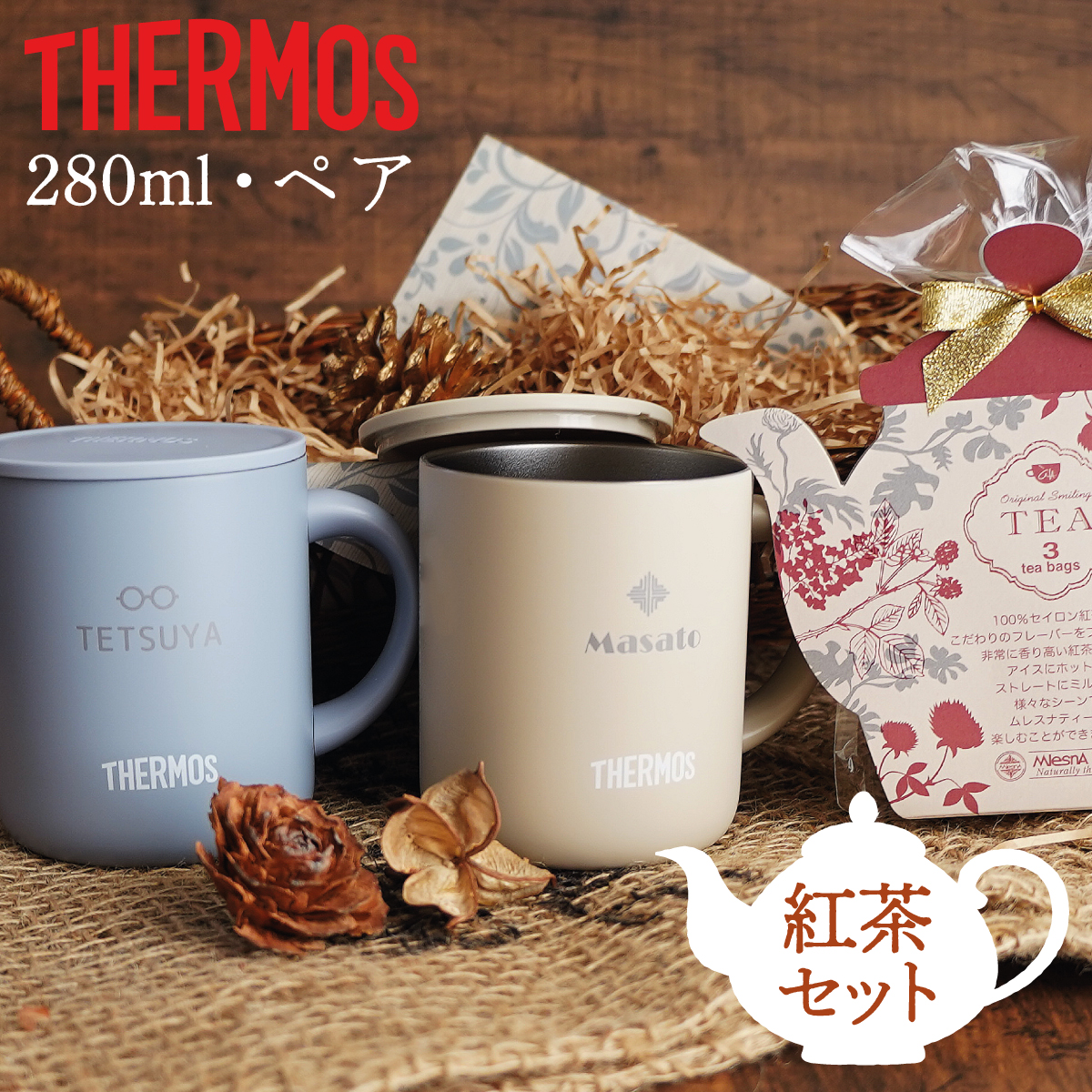 サーモス 蓋つき マグカップ ペア 紅茶セット 保温 保冷 280ml JDG-282C 名入れギフト
