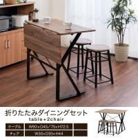 ダイニングセット 折りたたみ ダイニングテーブル チェア 2点 セット 2人用 幅90 バタフライテーブル スツール ダークブラウン ブラック 木製 スチール jk