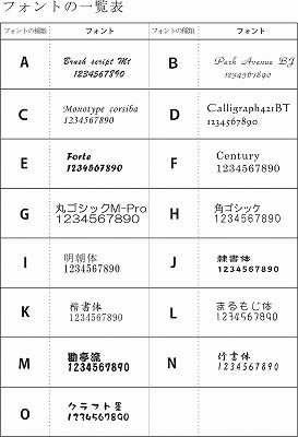 フォントは下記より選んで下さい。