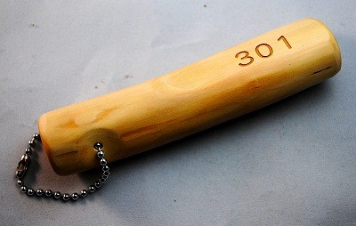 梨の木、丸材のルームキー。つるつるして手触りがいいです。部屋名などをレーザー彫刻します。自然な梨の木の丸棒形状のルームキー