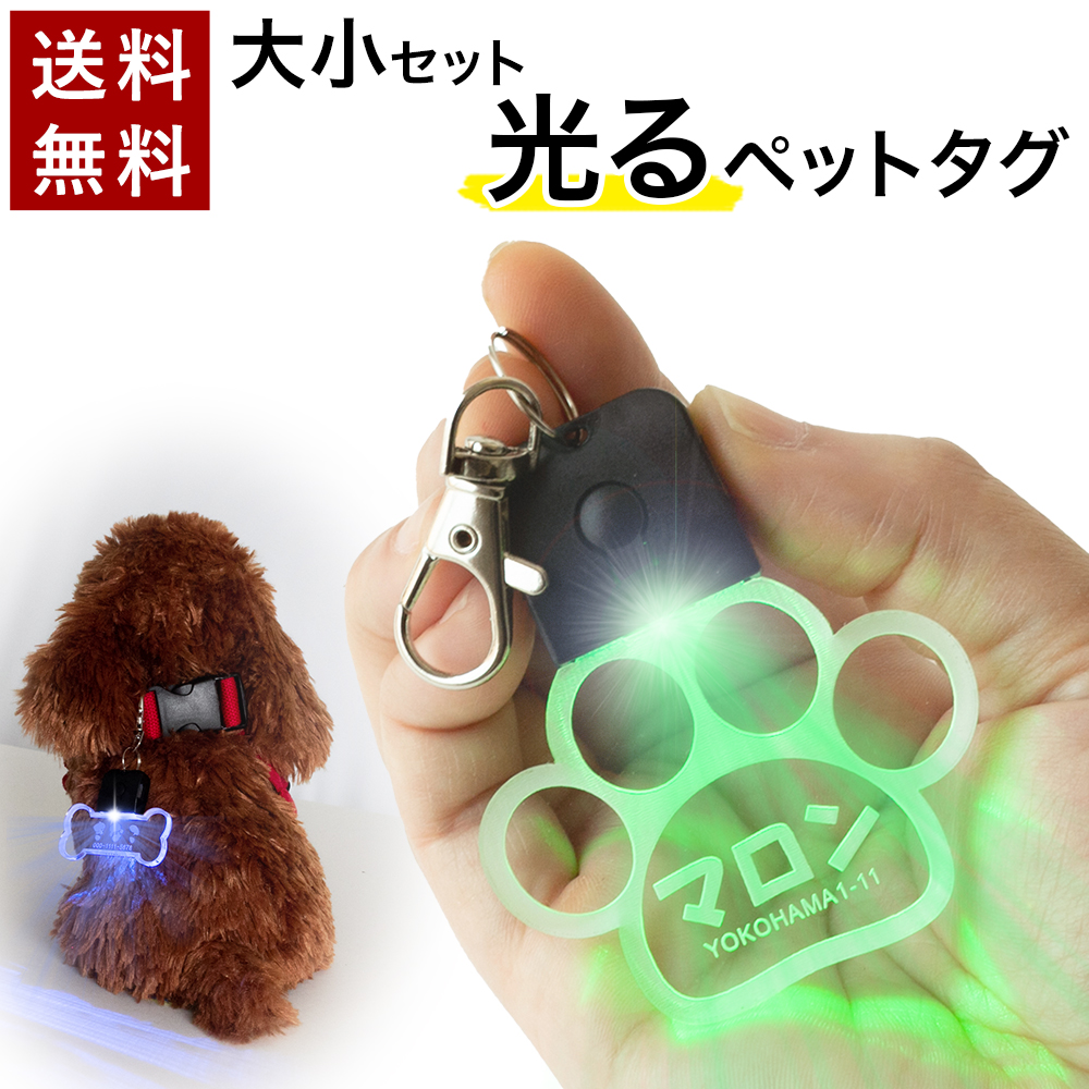 LEDで7色にかっこよく光るアクリル製ライト。ピカッと光って夜の散歩も安心。 早朝夜間の愛犬のお散歩に最適!交通事故等の危険からあなたの愛犬・愛猫を守ります。おしゃれな交通安全対策に。 ペットの首輪に付けて使用する他、ハーネス、リード、バッグ、靴、ベビーカー、自転車、ランドセルなど様々な用途でご利用いただけます。 名札、ネームタグ、ネームプレートとしてはもちろん、電話番号、住所、飼い主のお名前などをいれて迷子札としても。※小サイズには、文字が小さくなりすぎるため、お名前のみとなります。 ストラップやバックチャームにも使える大小2個のセット。 光るプレートは、フックタイプの金具なので首輪やハーネスに簡単装着! フォントは、シブい筆文字と可愛らしいポップ体が選べます。漢字、ひらがな、カタカナ、英字に対応。 完全オリジナルのキーホルダー。安心の日本製です。 アルファベット1文字のみ彫刻してペア キーホルダー にも。家族とお揃いにしてもGOOD!プレゼントとしても喜ばれています。 ▼商品詳細 セット内容:光るネームタグ(大)1個+チャーム(小)1個+充電用USBケーブル1点の3点セット サイズ、重さ:骨 / 大 横61×縦48mm 約13g 小 横33×縦19mm 約3g 足跡 / 大 横57×縦65mm 約14g 小 横28×縦25mm 約3g 丸 / 大 横43×縦62mm 約12g 小 横25×縦30mm 約3g ※キーフック、ボールチェーン除く 厚み:5mm 素材:アクリル カラー:クリア 生産国:日本 ▼ご注意 記載されている内容のまま作成させていただきます。電話番号、住所、飼い主のお名前などは、大サイズのみに彫刻いたします。小サイズには、文字が小さくなりすぎるため、彫刻することができません。お名前のみとなります。 ▼LEDライトについて 色の切り替わり順 1.全色でゆっくり連続変化 2.全色で素早く連続変化 3.手動で変化 光のカラー 1.レッド/2.グリーン/3.ブルー/4.イエロー/5.ライトブルー/6.バイオレット/7.ホワイト ※付属のUSBケーブルでフル充電(充電時間1時間程度)でおおよそ4時間ほど使用可能です。 ※充電中はLED部分が赤く点灯します。充電終了後消灯します。 ※防水ではありません。 ▼配送について メール便は、直接ポストへの投函となります。お住いの方のお名前の確認ができない場合、投函されない事が多くございます。 表札がないお客様は、仮の表札(手書きの物で可)のご掲示ください。 |