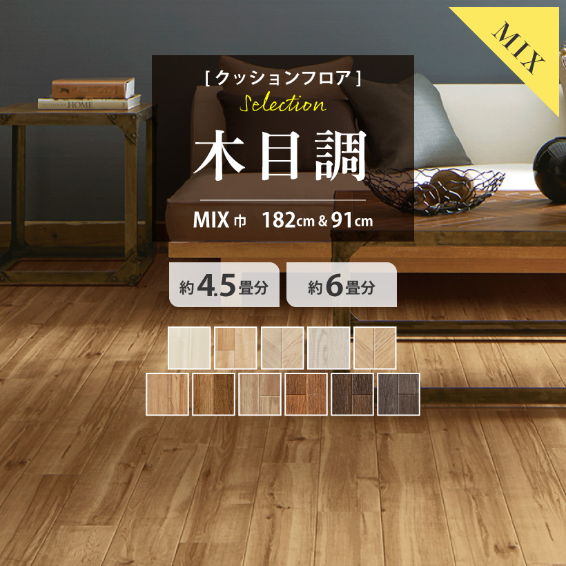 【最大★10%オフクーポン】 クッションフロア 4.5畳用 6畳用 木目調セレクション サンゲツ ミックスサイズ 2本セット 182cm巾 91cm巾