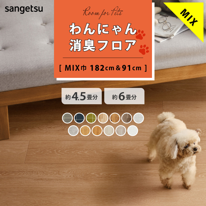 【最大★10%オフクーポン】 クッションフロア 4.5畳用 6畳用 わんにゃん消臭フロア サンゲツ ミックスサイズ 2本セット 182cm巾 91cm巾