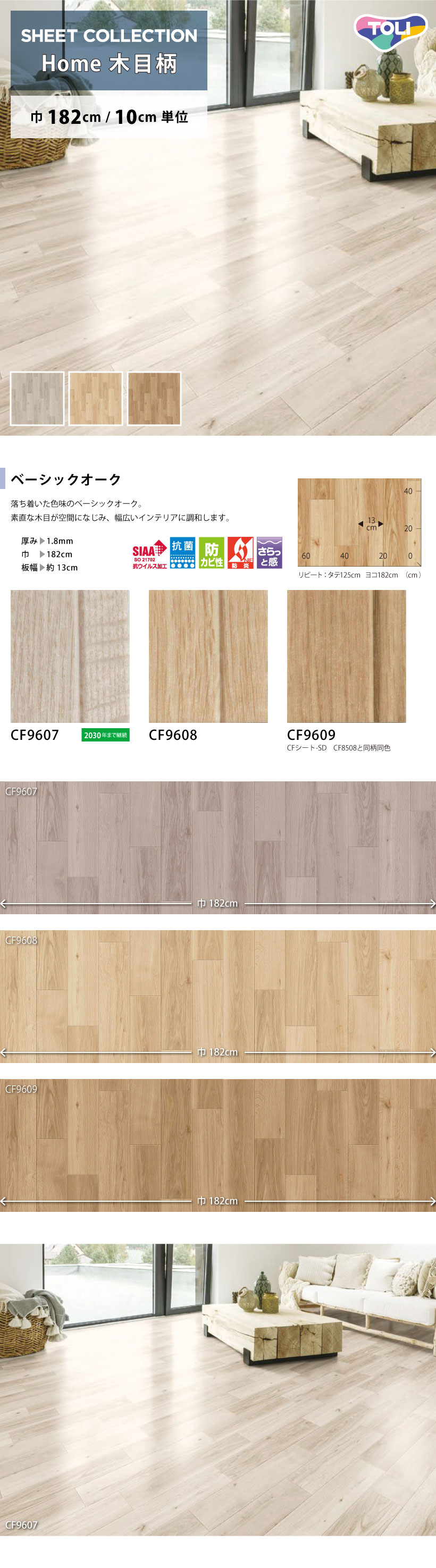 【今だけ★最大10%オフクーポン】 クッションフロア 住宅用 木目調 東リ 【ご注文は1m以上10cm単位】 ベーシックオーク CF9607 CF9608 CF9609
