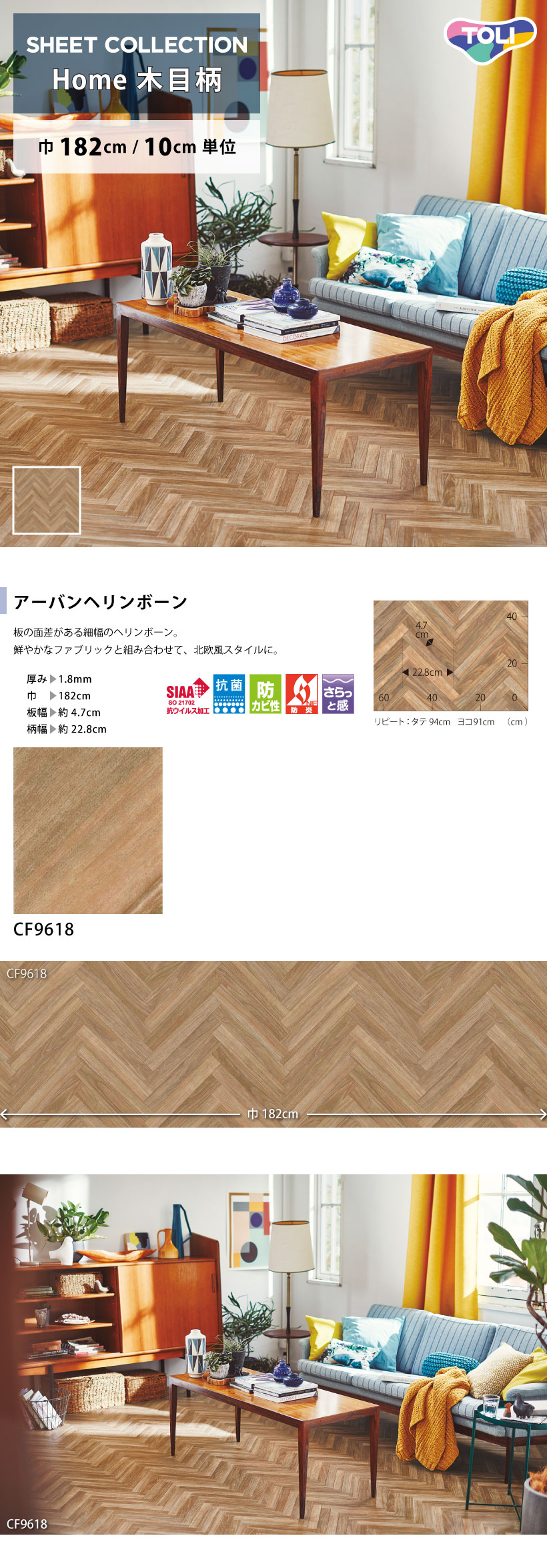 【今だけ★最大10%オフクーポン】 クッションフロア 住宅用 木目調 東リ 【ご注文は1m以上10cm単位】 アーバンヘリンボーン CF9618