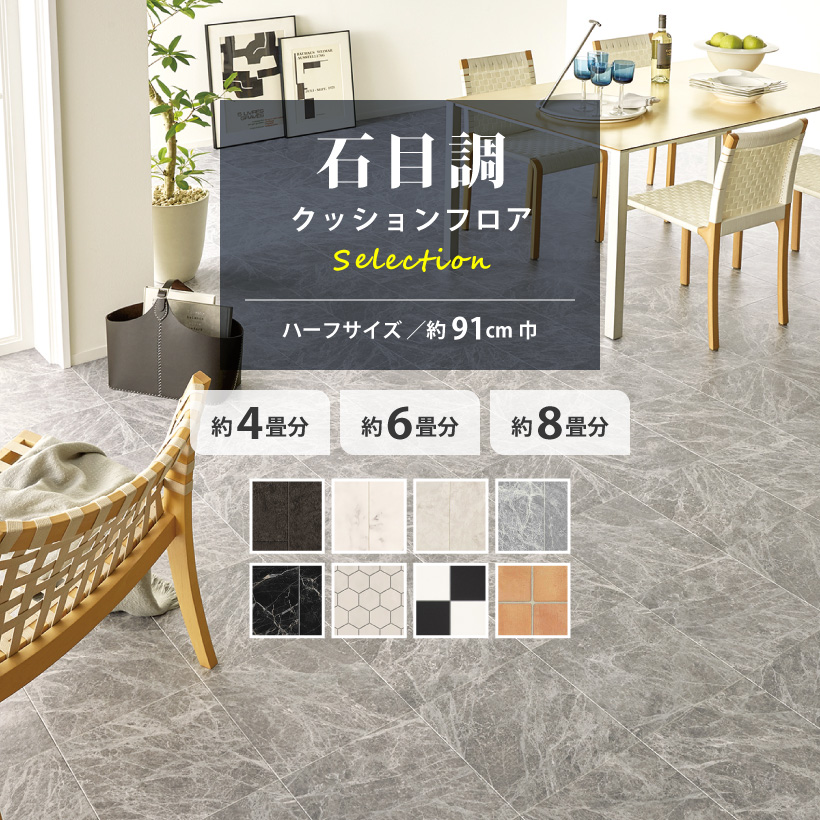 【最大★10%オフクーポン】 クッションフロア 4畳用 6畳用 8畳用 石目調セレクション 東リ 約91cm巾 ハーフサイズ
