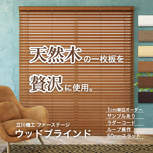 ブラインド 木製 ウッドブラインド オーダー ループ操作 スラット幅 50mm ラダーコード仕様 日本製 タチカワブラインドグループ 立川機工