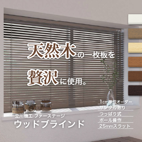 ブラインド 木製 ウッドブラインド オーダー つっぱり式 ポール操作 スラット幅 25mm 日本製 タチカワブラインドグループ 立川機工